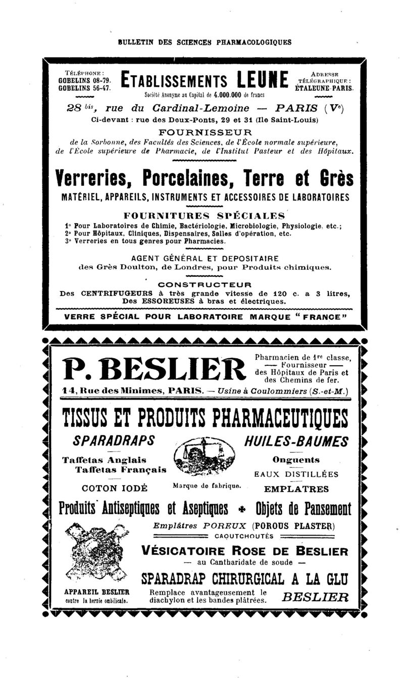Bulletin des sciences pharmacologiques : organe scientifique et professionnel [Bulletin des intérêts professionnels]
