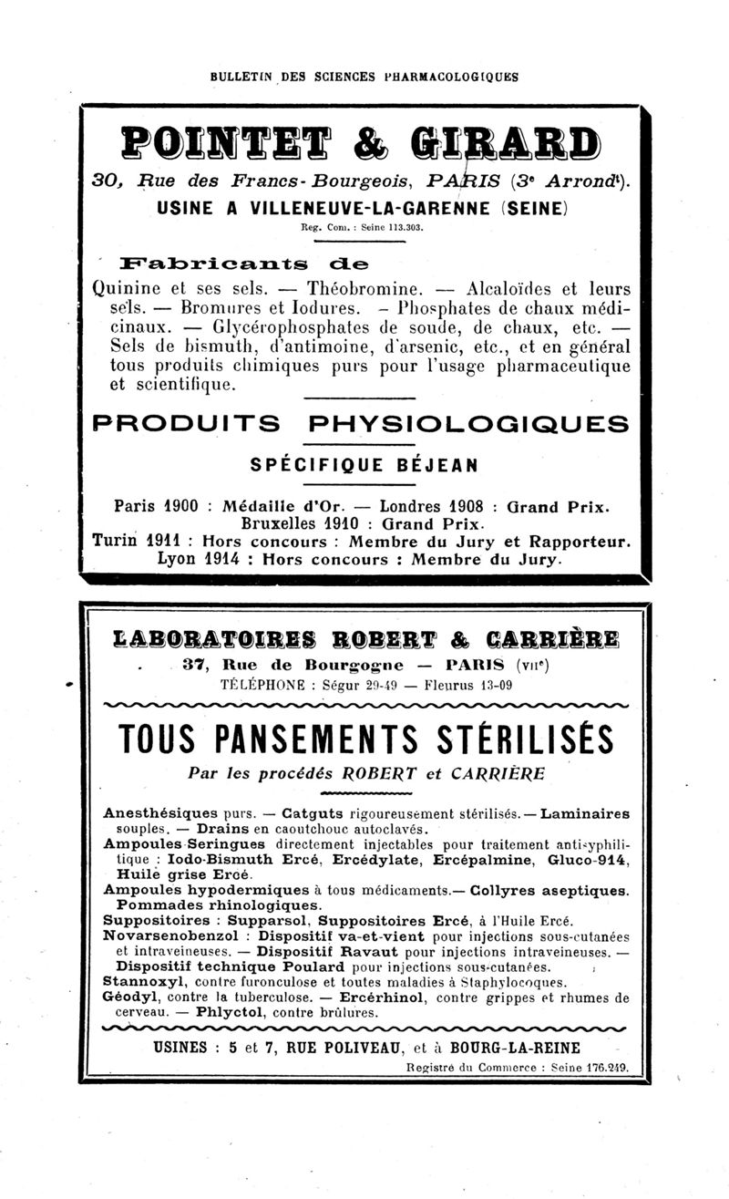 Bulletin des sciences pharmacologiques : organe scientifique et professionnel [Bulletin des intérêts professionnels]