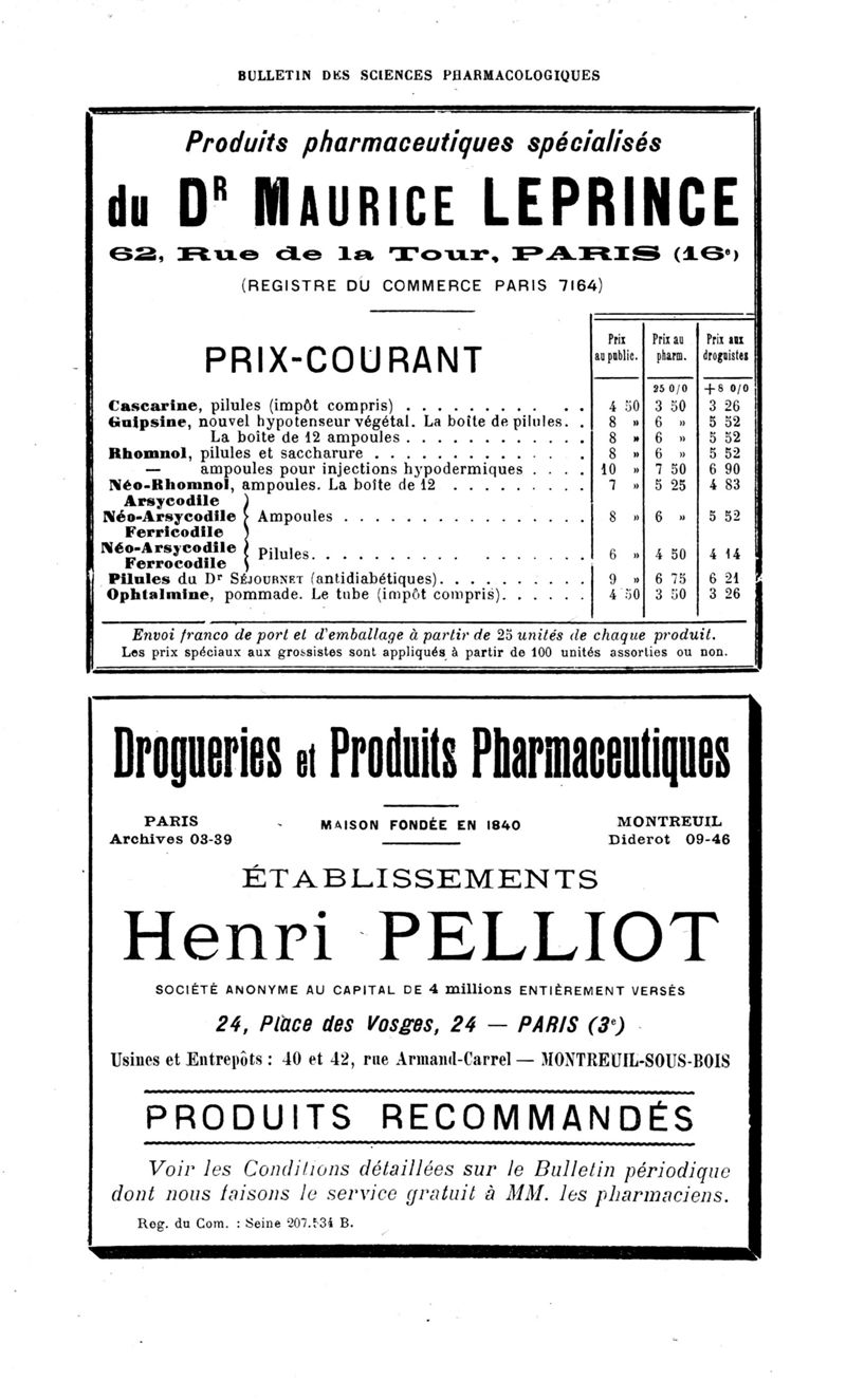 Bulletin des sciences pharmacologiques : organe scientifique et professionnel [Bulletin des intérêts professionnels]
