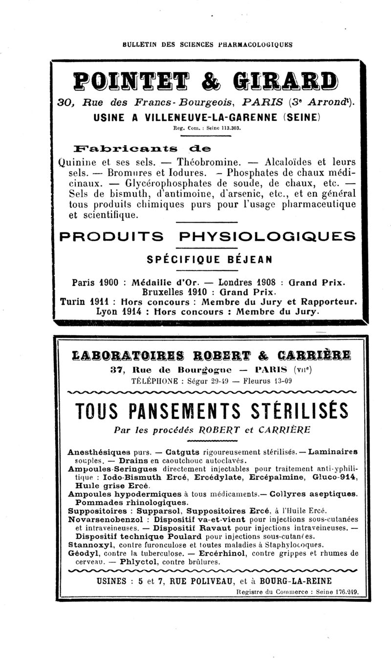 Bulletin des sciences pharmacologiques : organe scientifique et professionnel [Bulletin des intérêts professionnels]