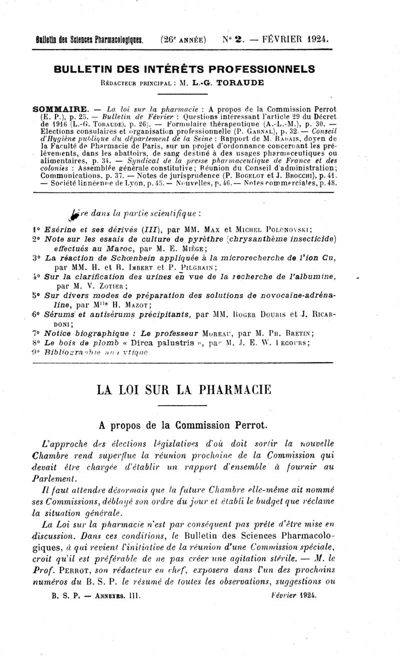 Bulletin des sciences pharmacologiques : organe scientifique et professionnel [Bulletin des intérêts professionnels]