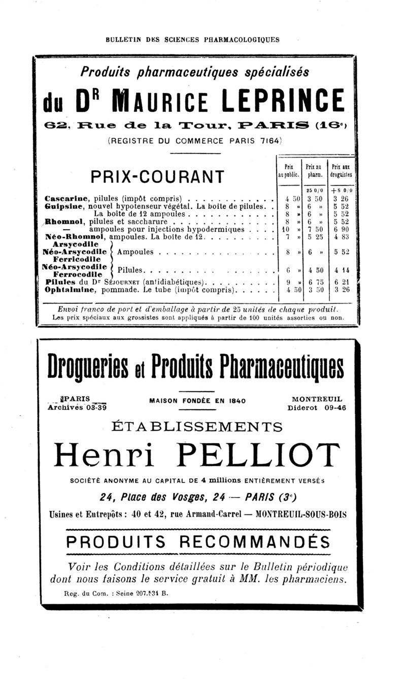 Bulletin des sciences pharmacologiques : organe scientifique et professionnel [Bulletin des intérêts professionnels]