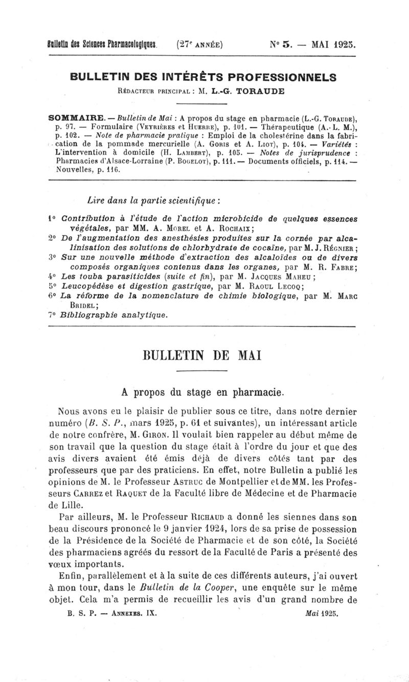 Bulletin des sciences pharmacologiques : organe scientifique et professionnel [Bulletin des intérêts professionnels]