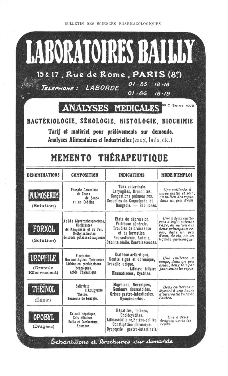 Bulletin des sciences pharmacologiques : organe scientifique et professionnel [Bulletin des intérêts professionnels]