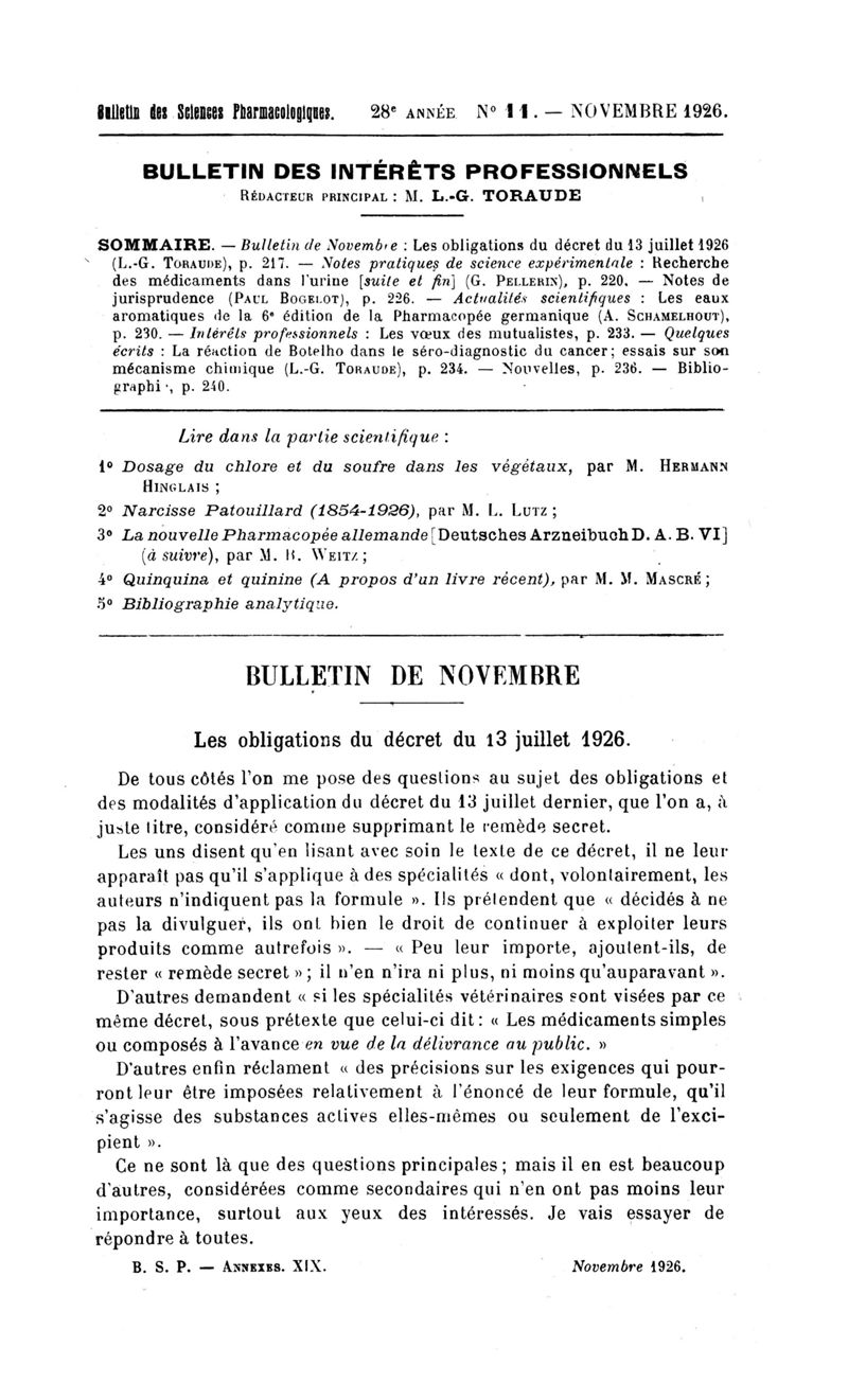 Bulletin des sciences pharmacologiques : organe scientifique et professionnel [Bulletin des intérêts professionnels]