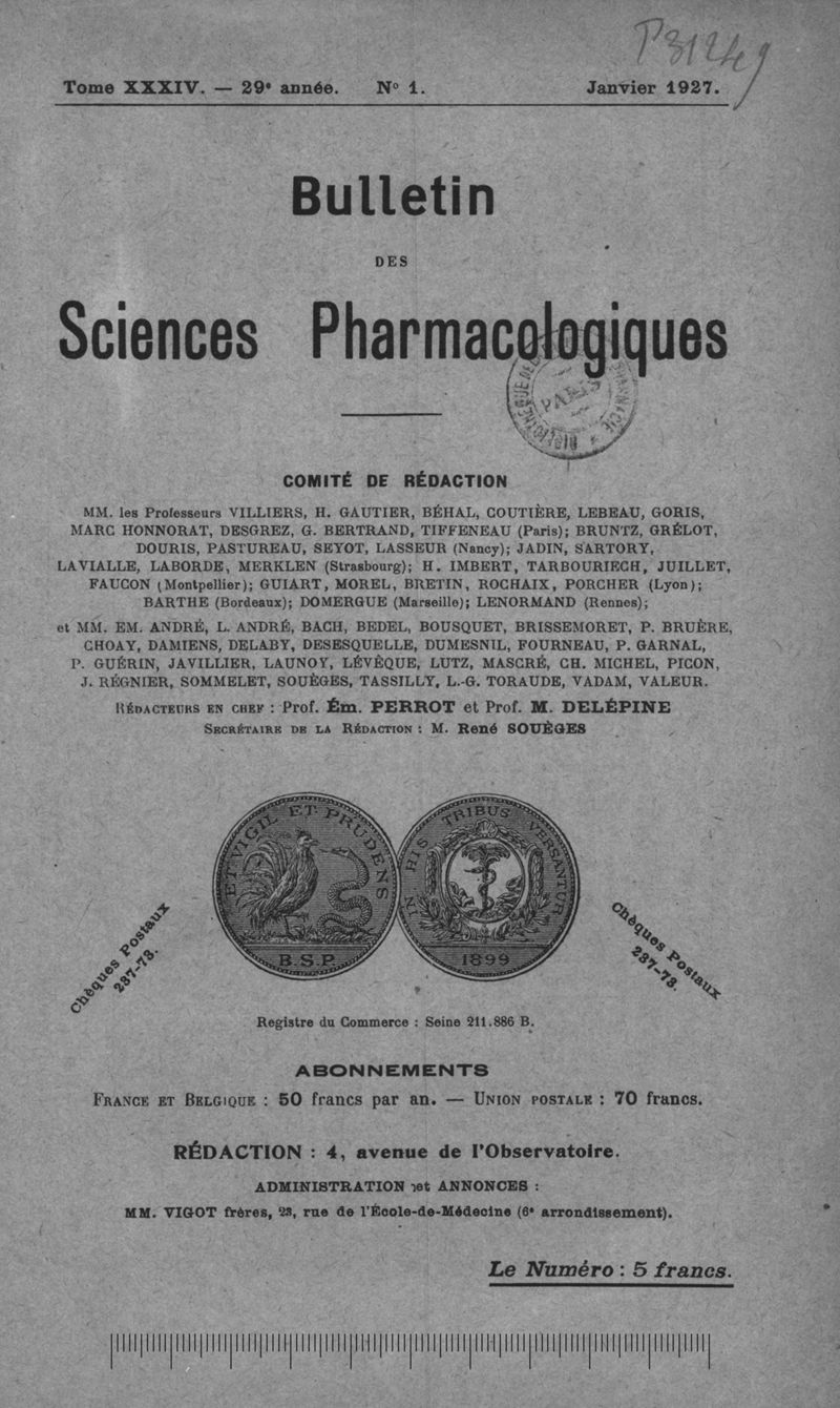 Bulletin des sciences pharmacologiques : organe scientifique et professionnel [Bulletin des intérêts professionnels]