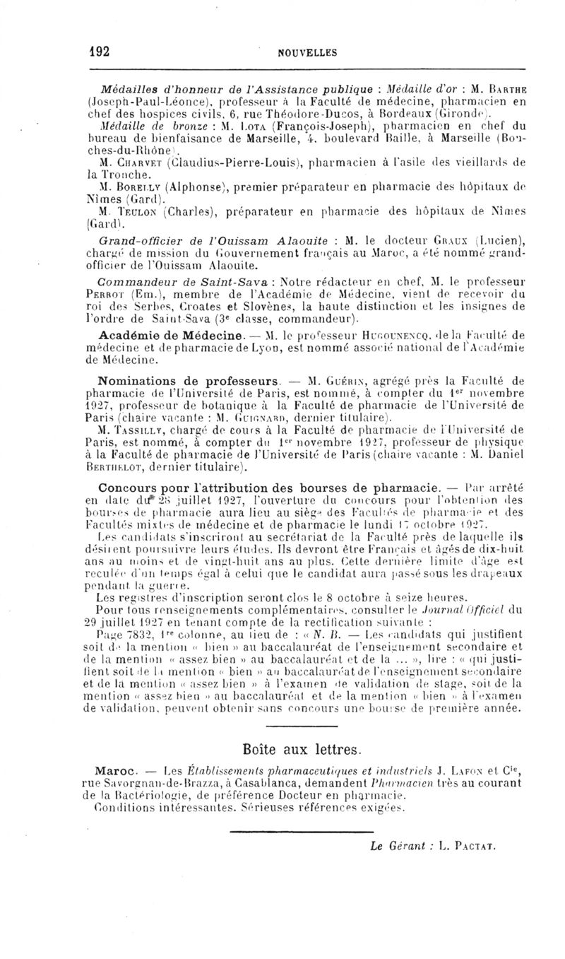 Bulletin des sciences pharmacologiques : organe scientifique et professionnel [Bulletin des intérêts professionnels]