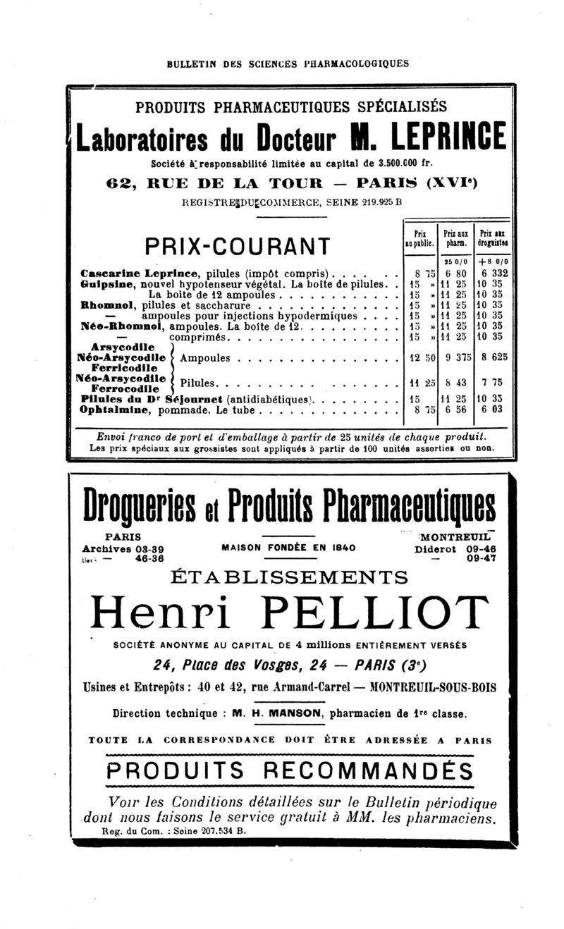 Bulletin des sciences pharmacologiques : organe scientifique et professionnel [Bulletin des intérêts professionnels]