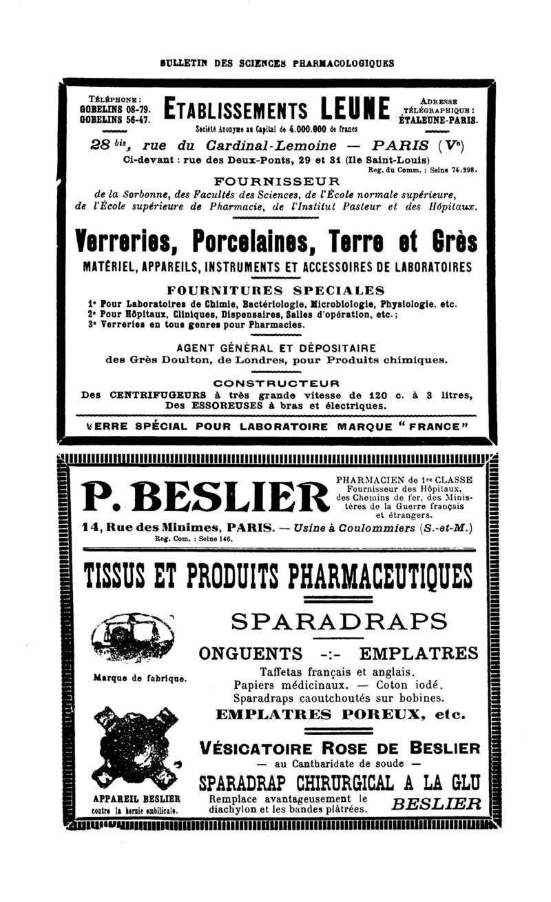 Bulletin des sciences pharmacologiques : organe scientifique et professionnel [Bulletin des intérêts professionnels]