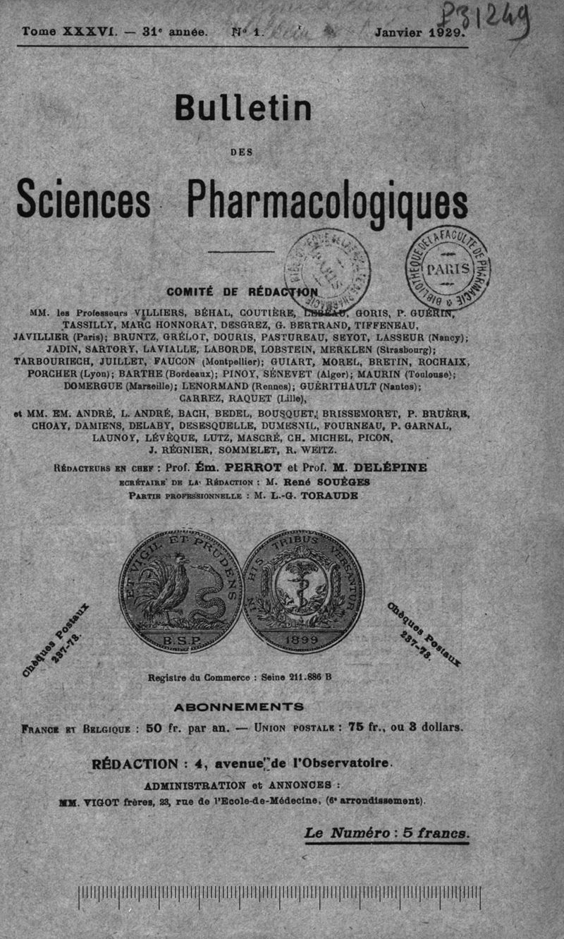 Bulletin des sciences pharmacologiques : organe scientifique et professionnel [Bulletin scientifique]