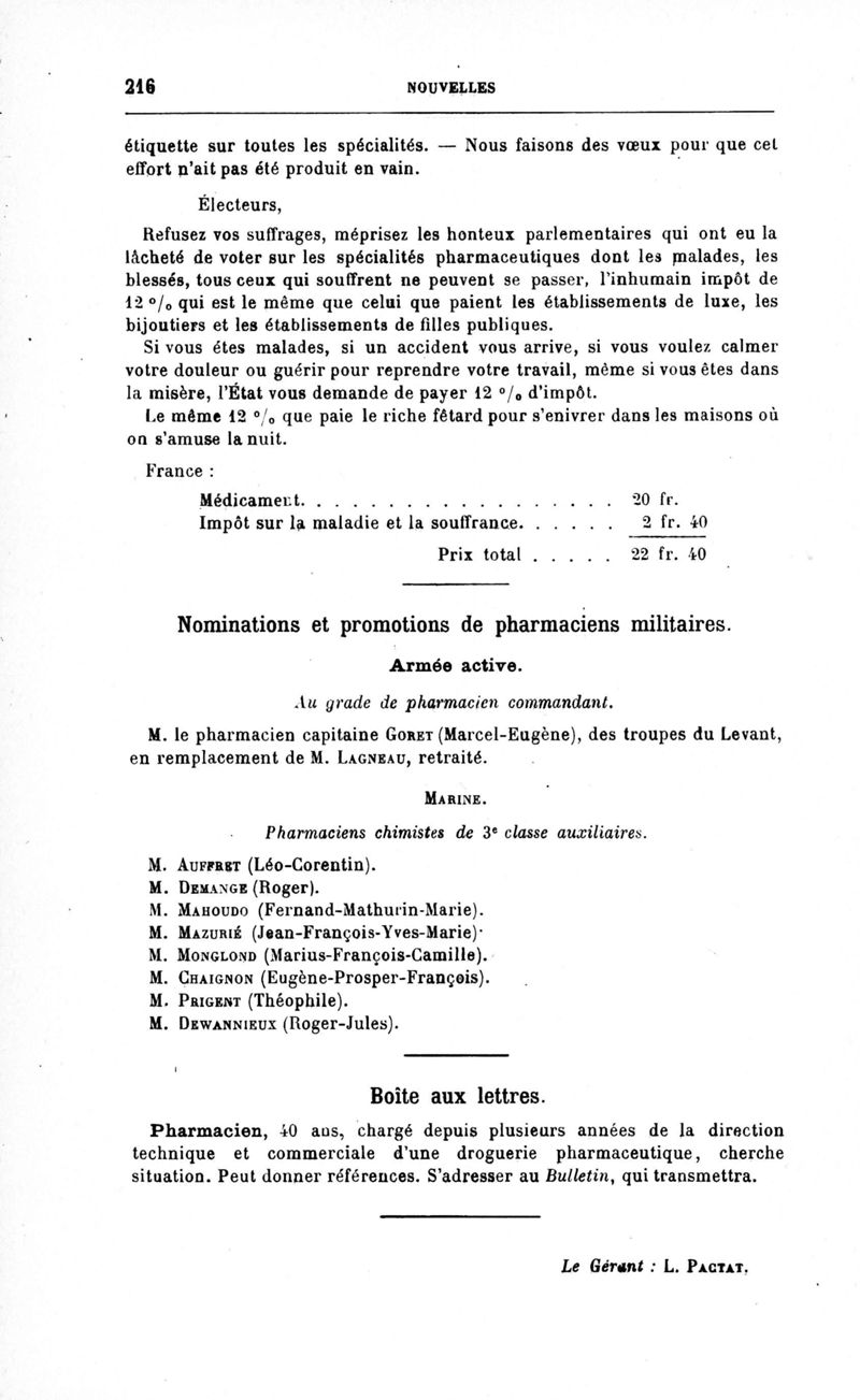 Bulletin des sciences pharmacologiques : organe scientifique et professionnel [Bulletin des intérêts professionnels]