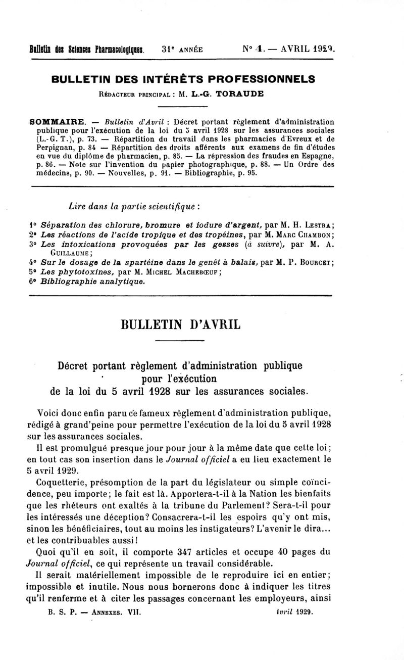 Bulletin des sciences pharmacologiques : organe scientifique et professionnel [Bulletin des intérêts professionnels]