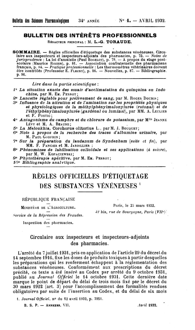 Bulletin des sciences pharmacologiques : organe scientifique et professionnel [Bulletin des intérêts professionnels]