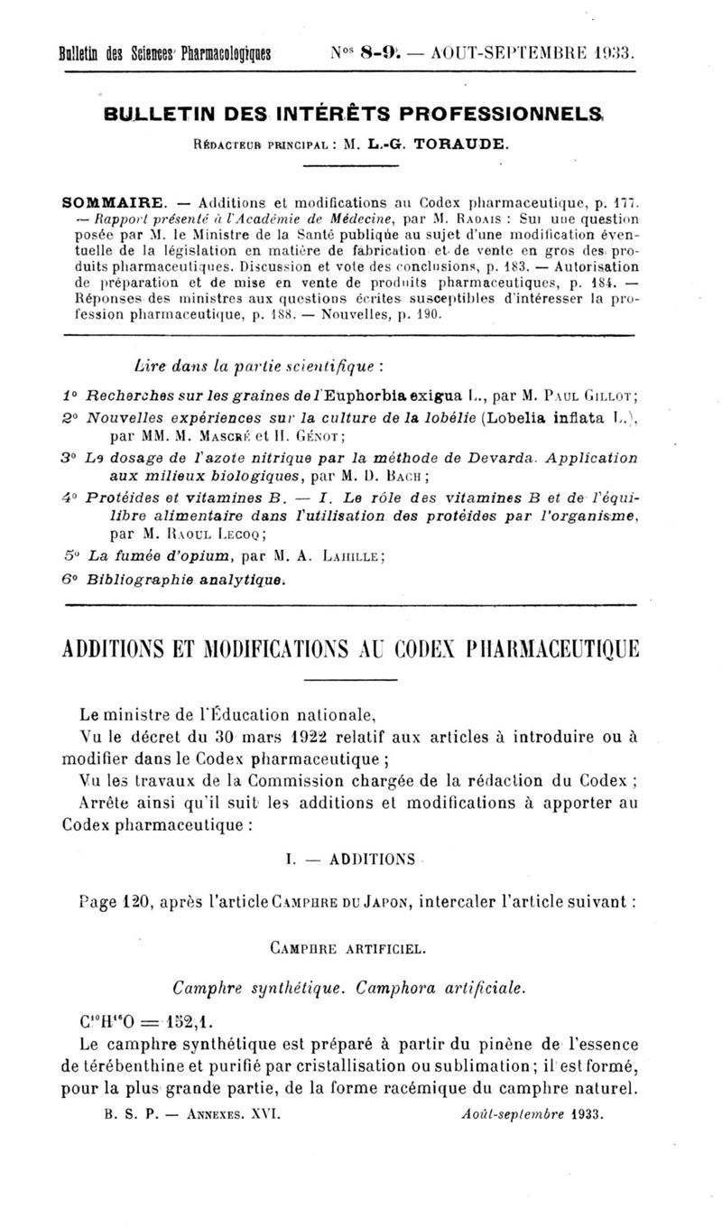 Bulletin des sciences pharmacologiques : organe scientifique et professionnel [Bulletin des intérêts professionnels]