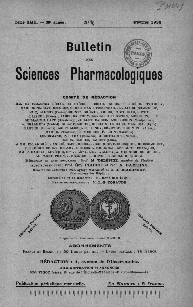Bulletin des sciences pharmacologiques : organe scientifique et professionnel [Bulletin scientifique]