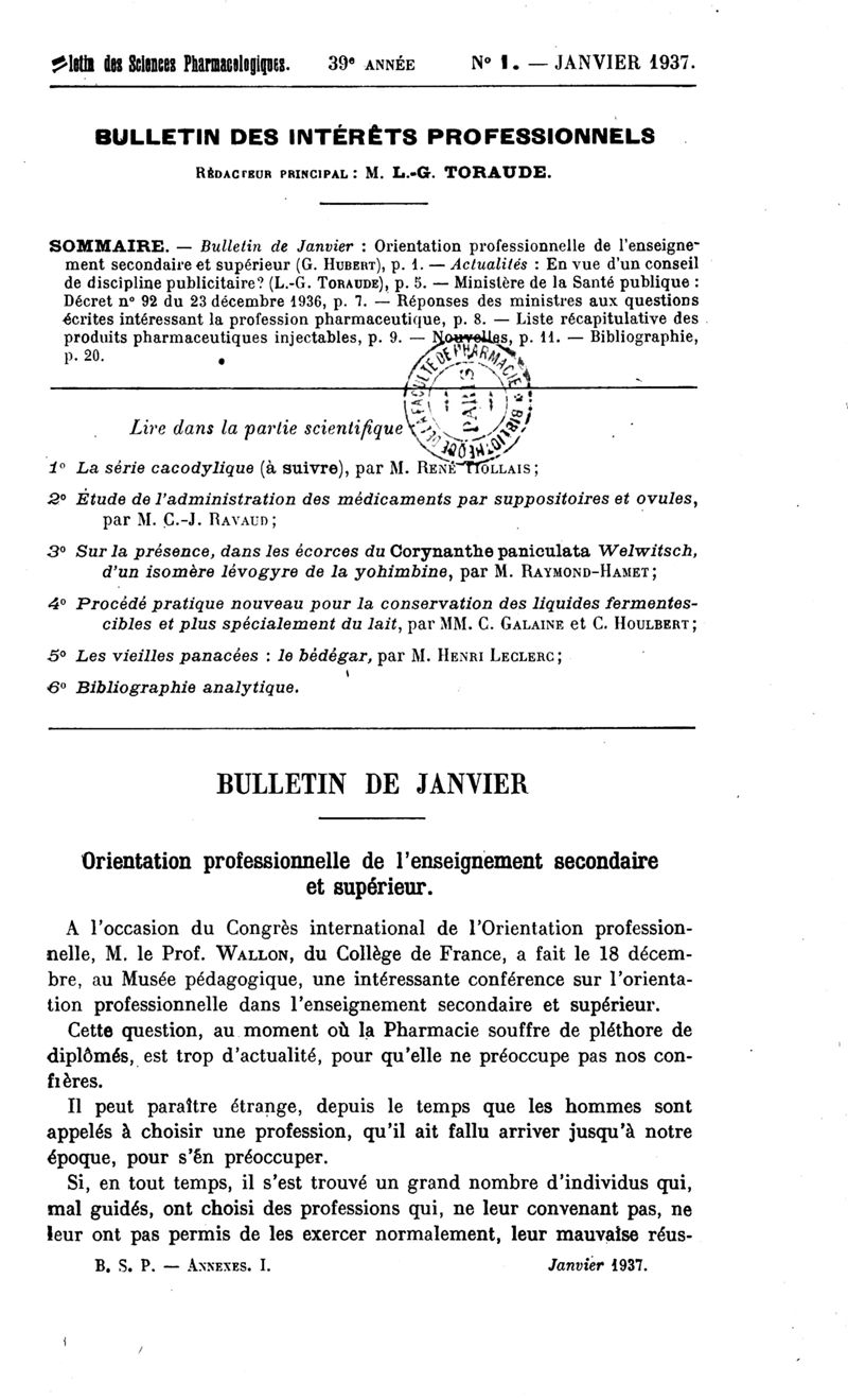 Bulletin des sciences pharmacologiques : organe scientifique et professionnel [Bulletin des intérêts professionnels + phytopharmacie]