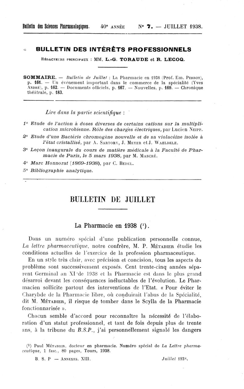 Bulletin des sciences pharmacologiques : organe scientifique et professionnel [Bulletin des intérêts professionnels + phytopharmacie]