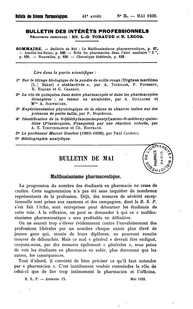 Bulletin des sciences pharmacologiques : organe scientifique et professionnel [Bulletin des intérêts professionnels + phytopharmacie]