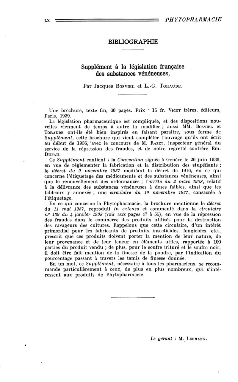 Bulletin des sciences pharmacologiques : organe scientifique et professionnel [Bulletin des intérêts professionnels + phytopharmacie]