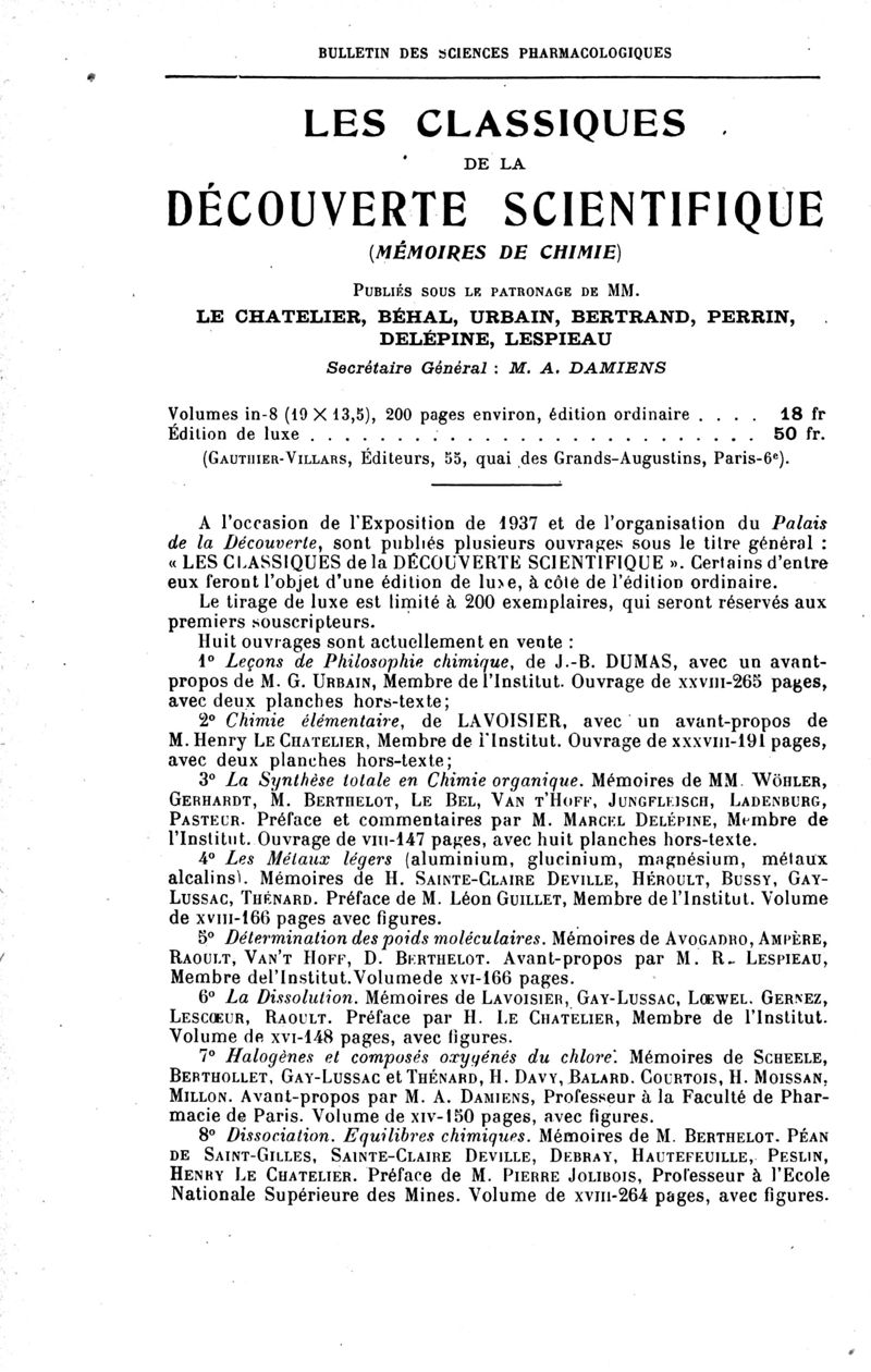 Bulletin des sciences pharmacologiques : organe scientifique et professionnel [Bulletin des intérêts professionnels + phytopharmacie]