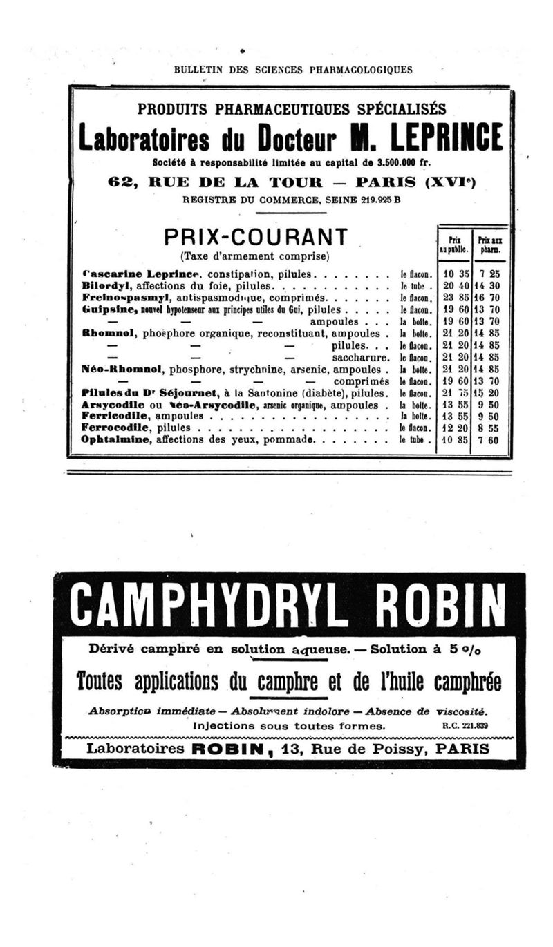 Bulletin des sciences pharmacologiques : organe scientifique et professionnel [Bulletin des intérêts professionnels + phytopharmacie]
