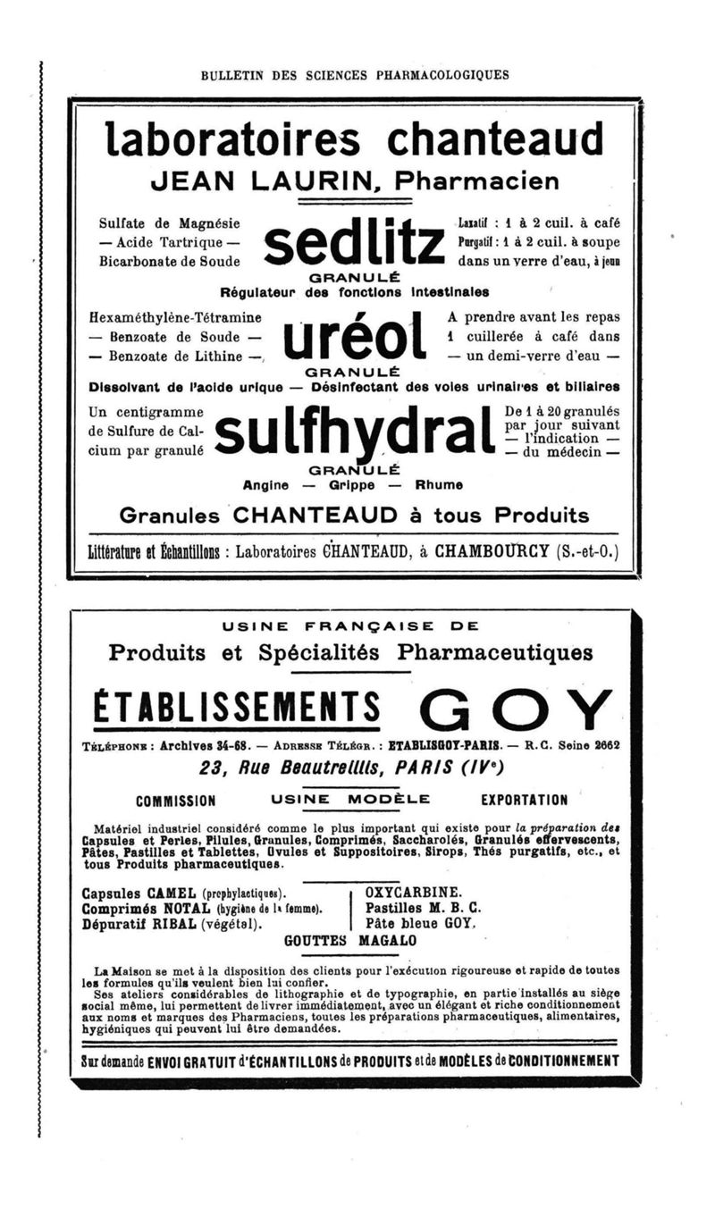 Bulletin des sciences pharmacologiques : organe scientifique et professionnel [Bulletin des intérêts professionnels + phytopharmacie]