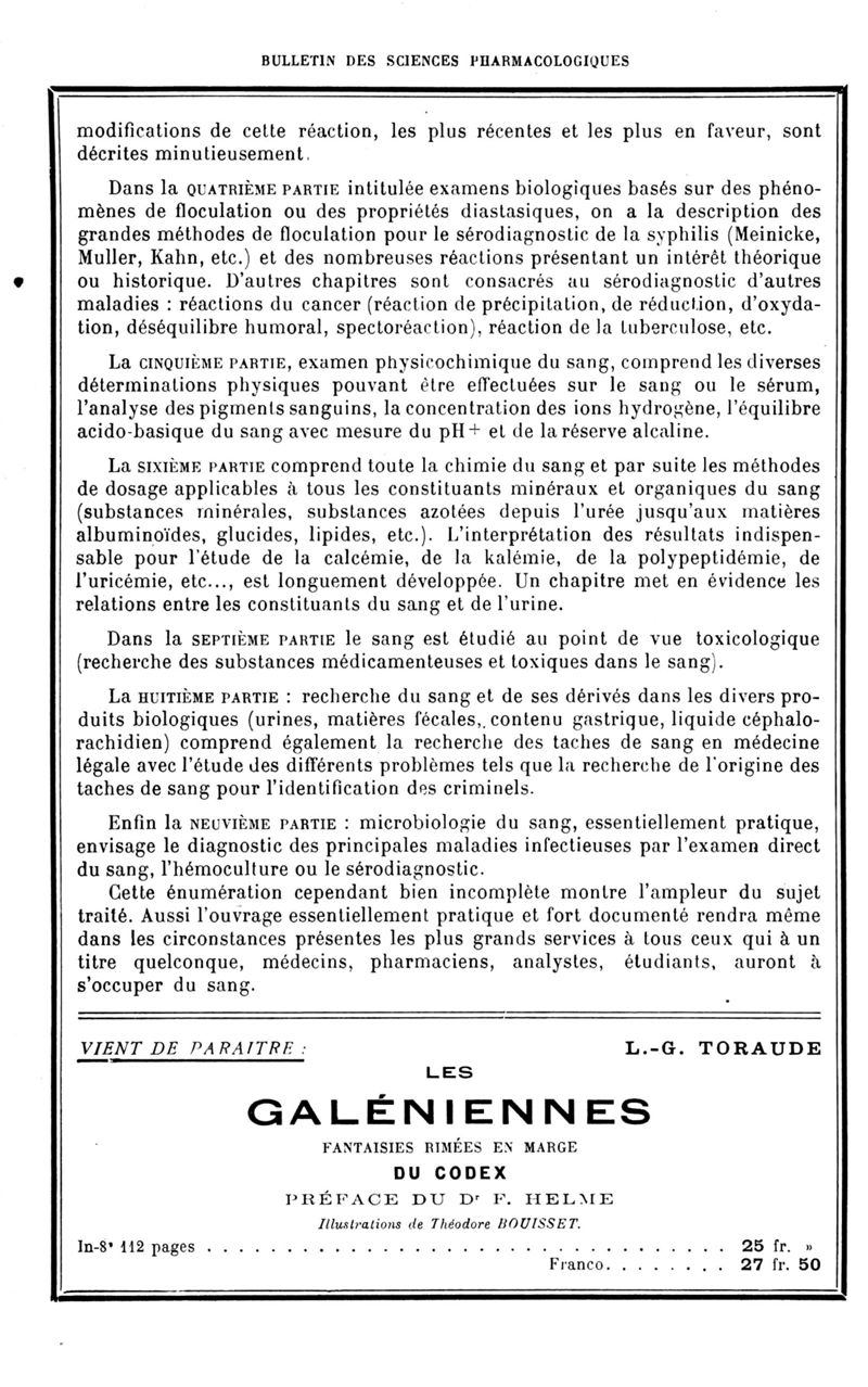 Bulletin des sciences pharmacologiques : organe scientifique et professionnel [Bulletin des intérêts professionnels + phytopharmacie]