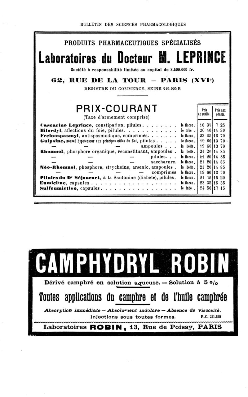 Bulletin des sciences pharmacologiques : organe scientifique et professionnel [Bulletin des intérêts professionnels + phytopharmacie]