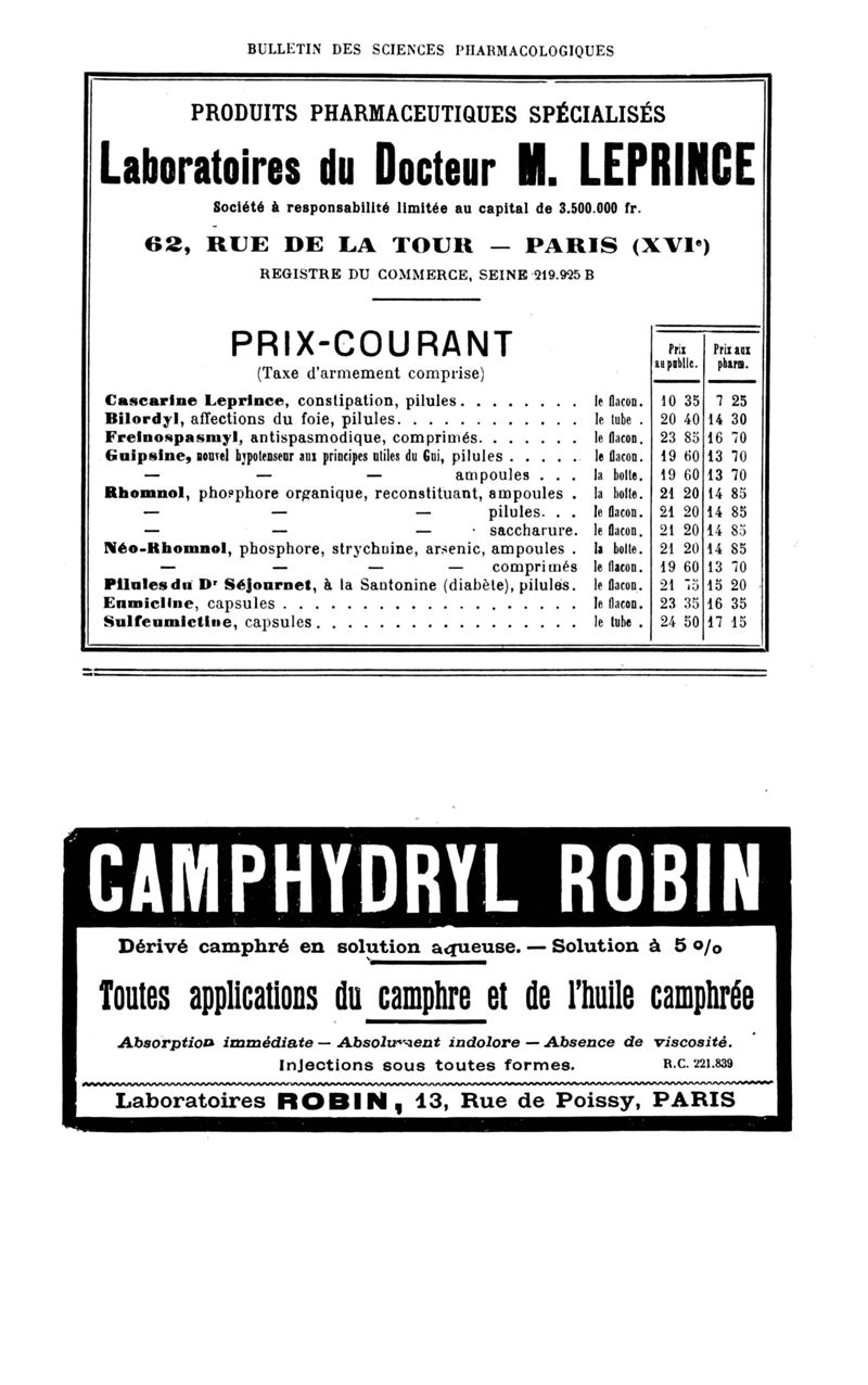 Bulletin des sciences pharmacologiques : organe scientifique et professionnel [Bulletin des intérêts professionnels + phytopharmacie]