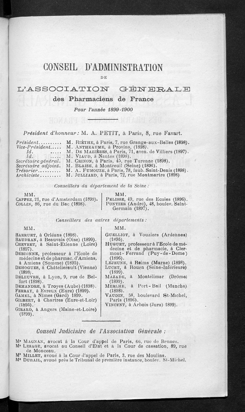 Association générale des pharmaciens de France.
