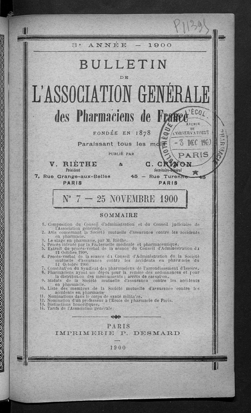 Association générale des pharmaciens de France.