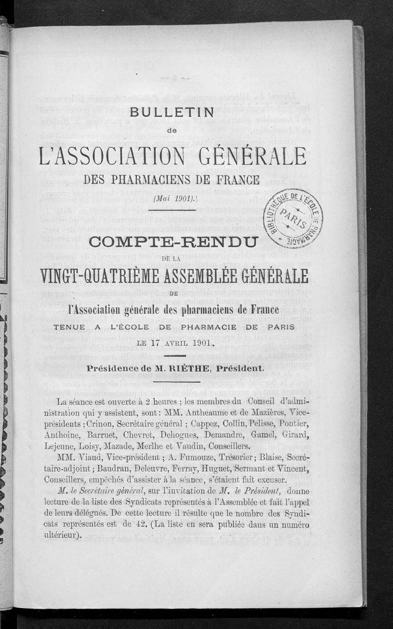 Association générale des pharmaciens de France.