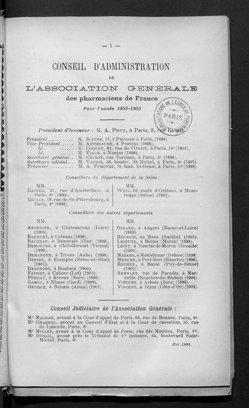 Association générale des pharmaciens de France.