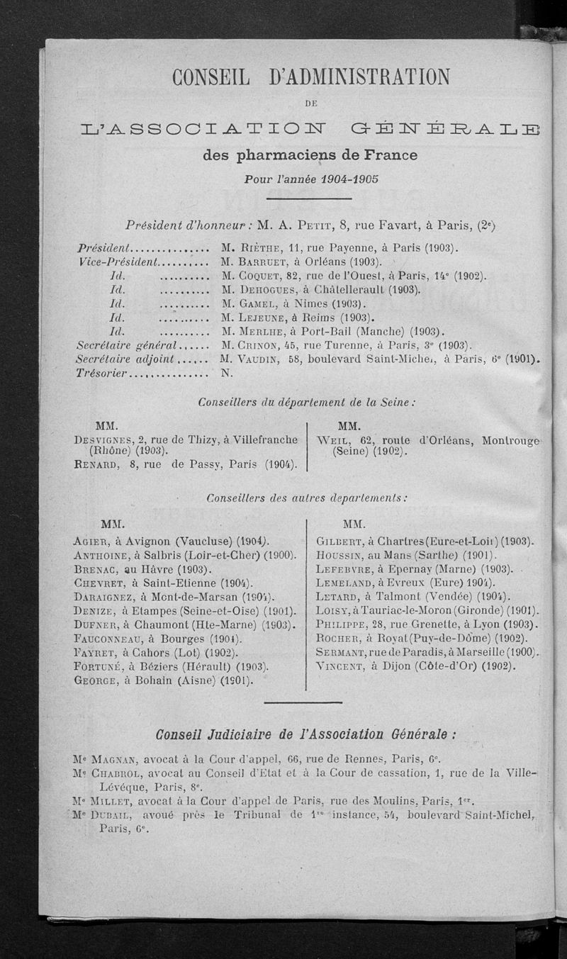 Association générale des pharmaciens de France.