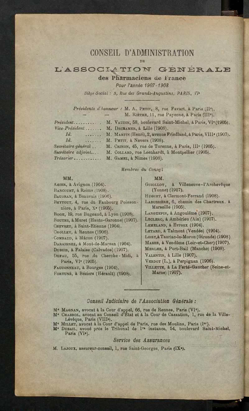 Association générale des pharmaciens de France.