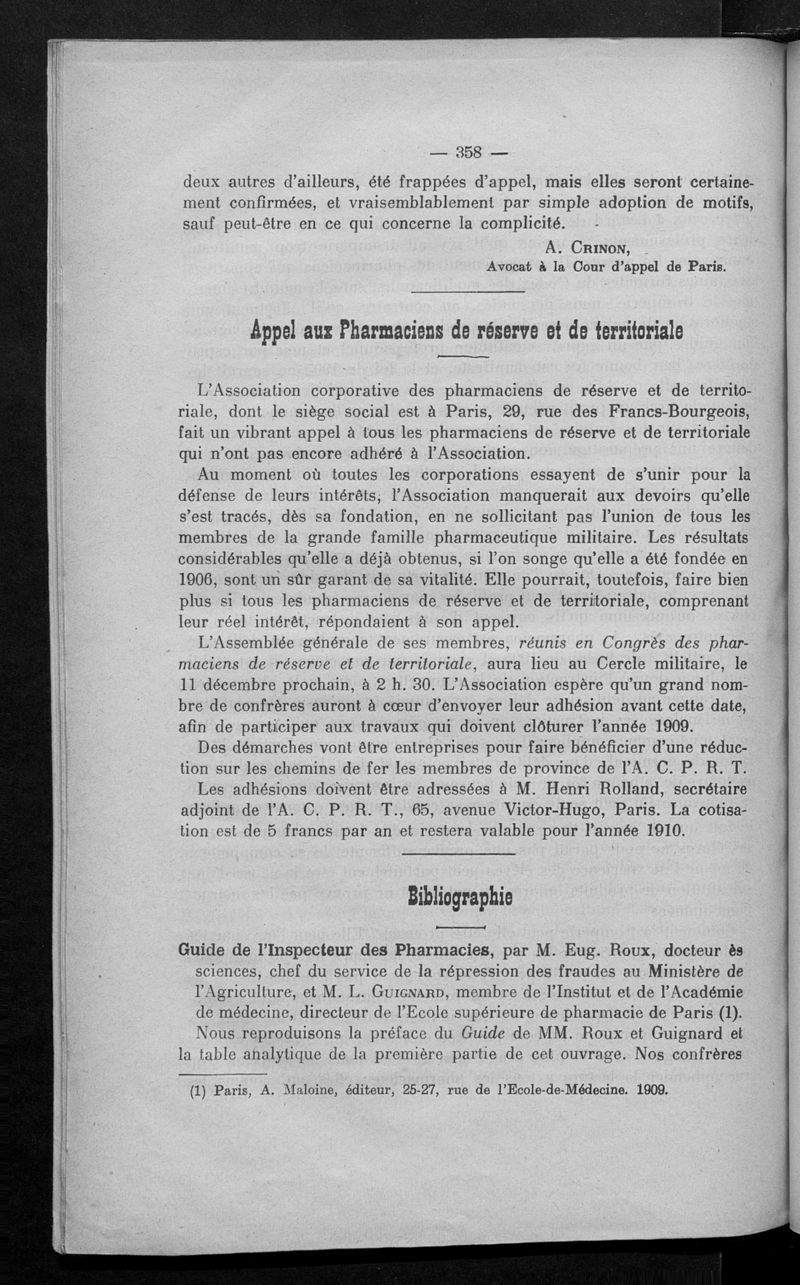 Association générale des pharmaciens de France.
