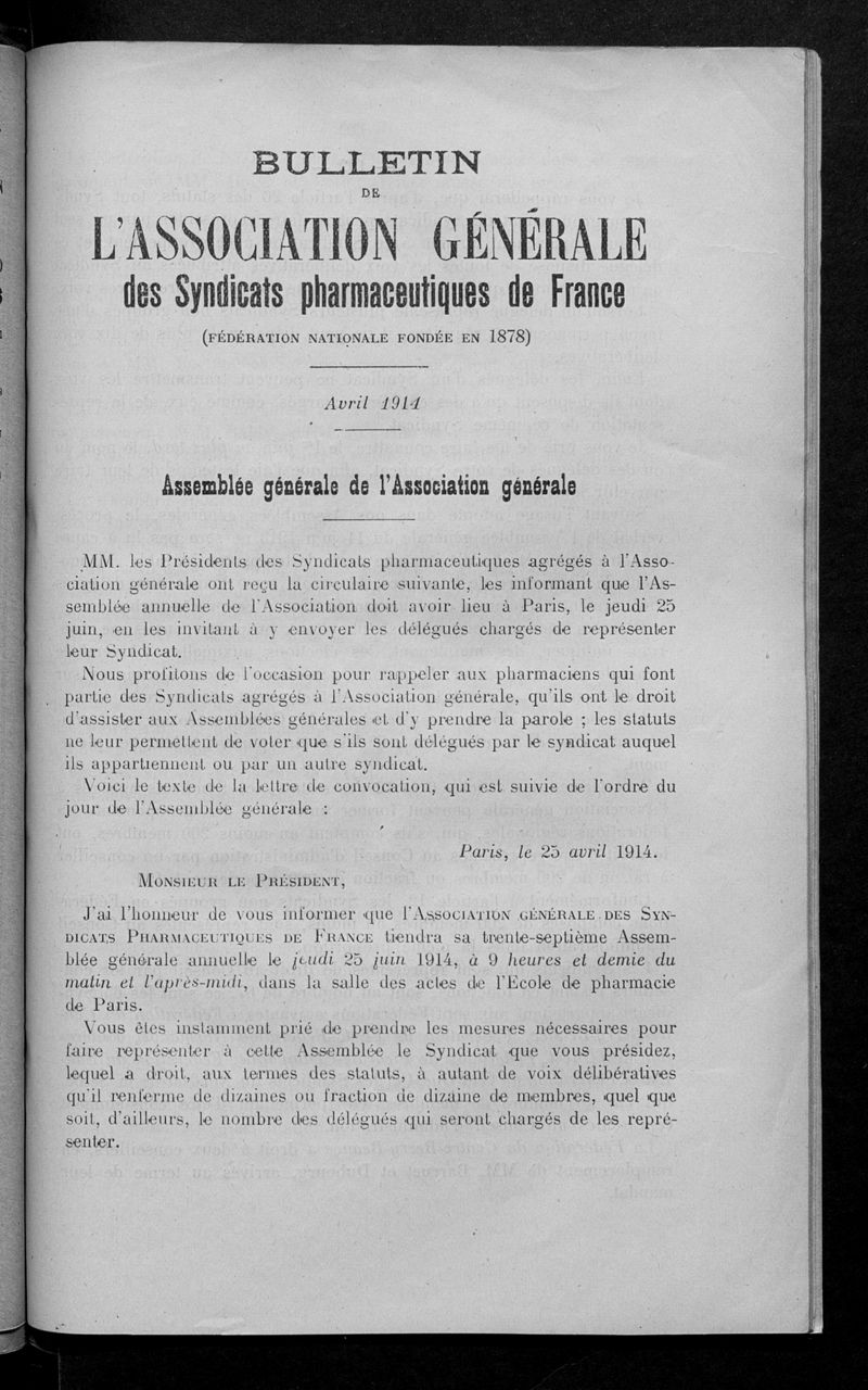 Association générale des syndicats pharmaceutiques de France.