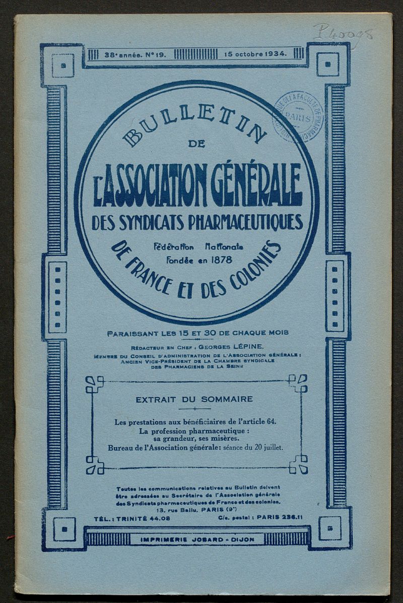 Montpellier : Association générale des syndicats pharmaceutiques de France,