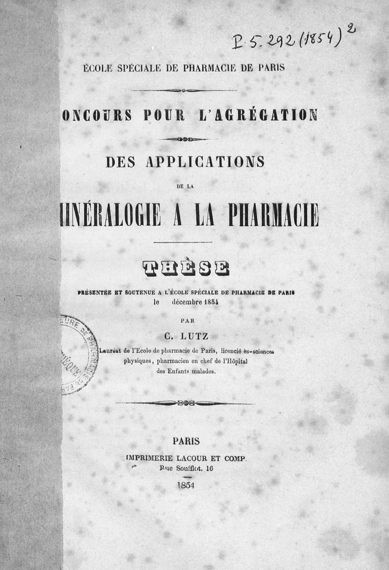 Thèse de pharmacie de Paris (agrégation),