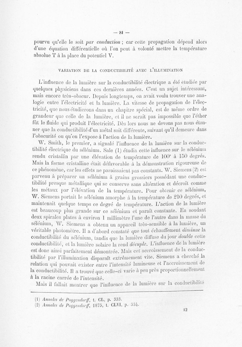 De la propagation de l'électricité dans les corps solides, liquides et gazeux : ses effets chimiques
