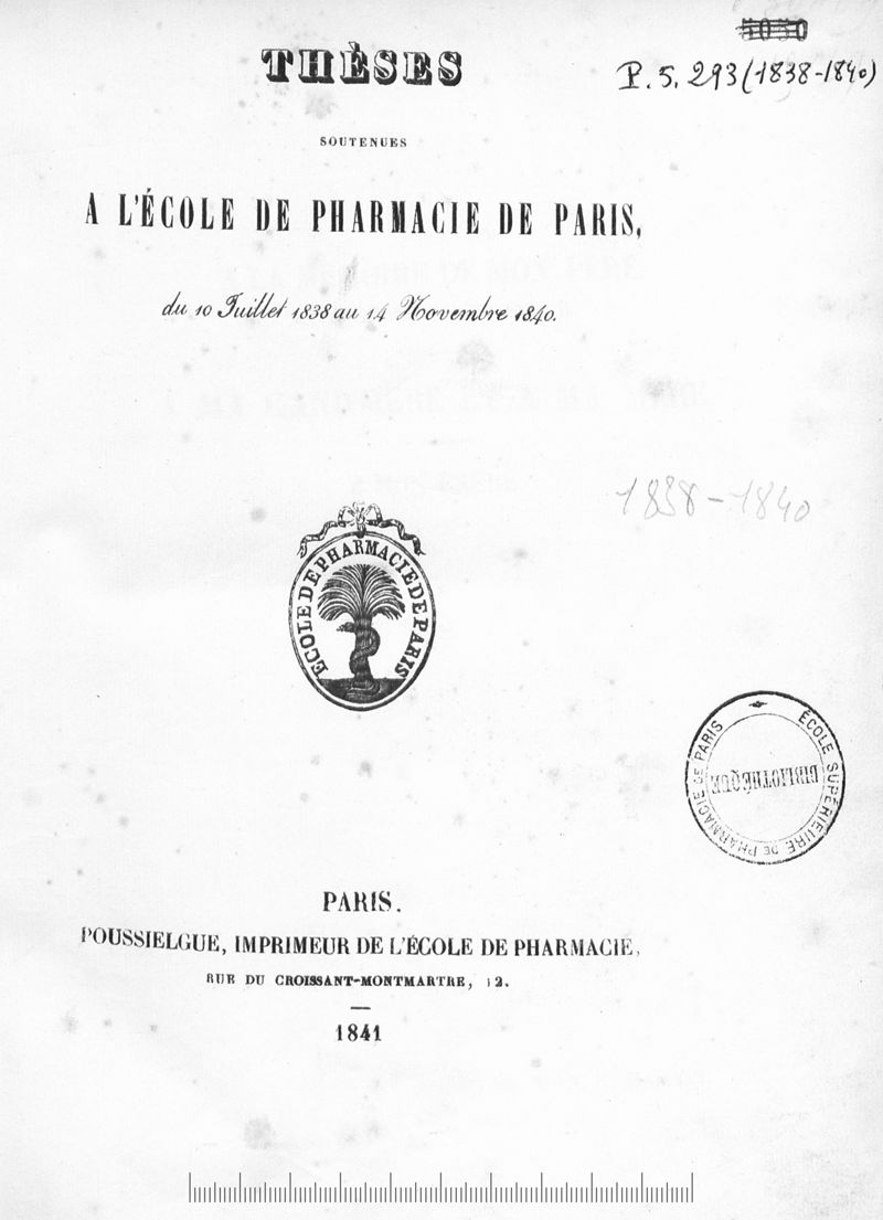 Thèse de pharmacie de Paris ,