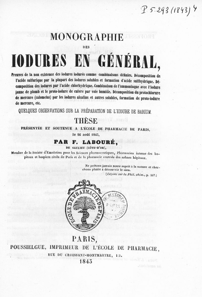 Thèse de pharmacie de Paris ,