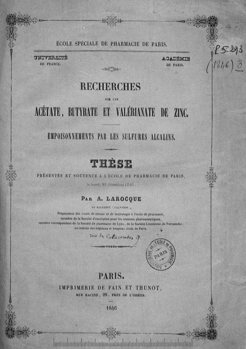 Thèse de pharmacie de Paris ,