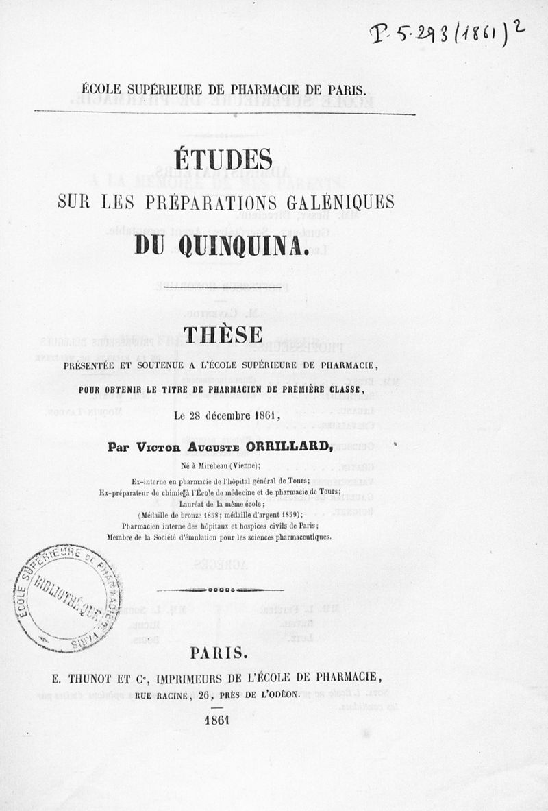 Thèse de pharmacie de Paris ,