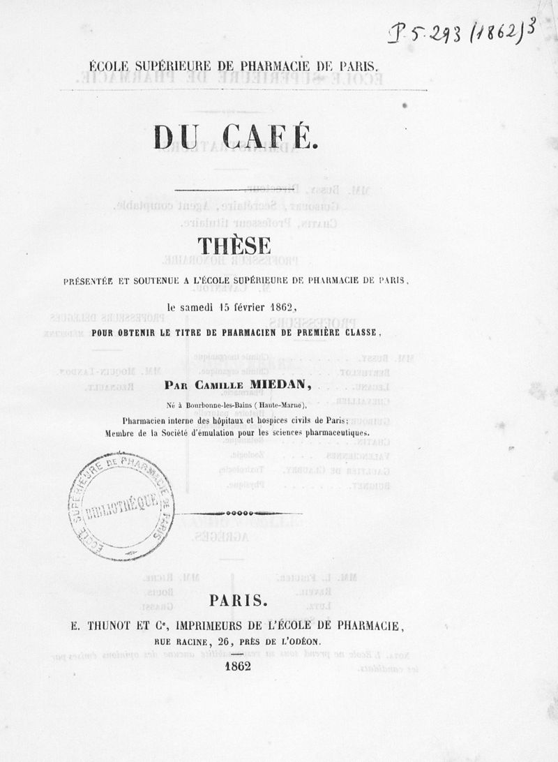Thèse de pharmacie de Paris , 1862.
