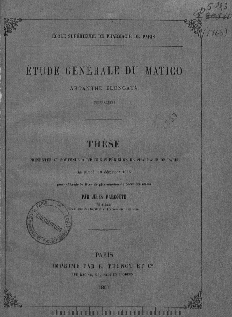Thèse de pharmacie de Paris ,