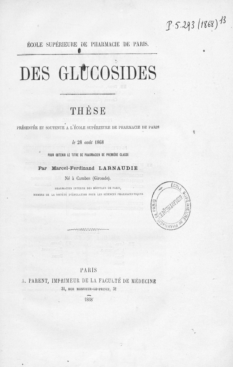 Thèse de pharmacie de Paris , 1868.