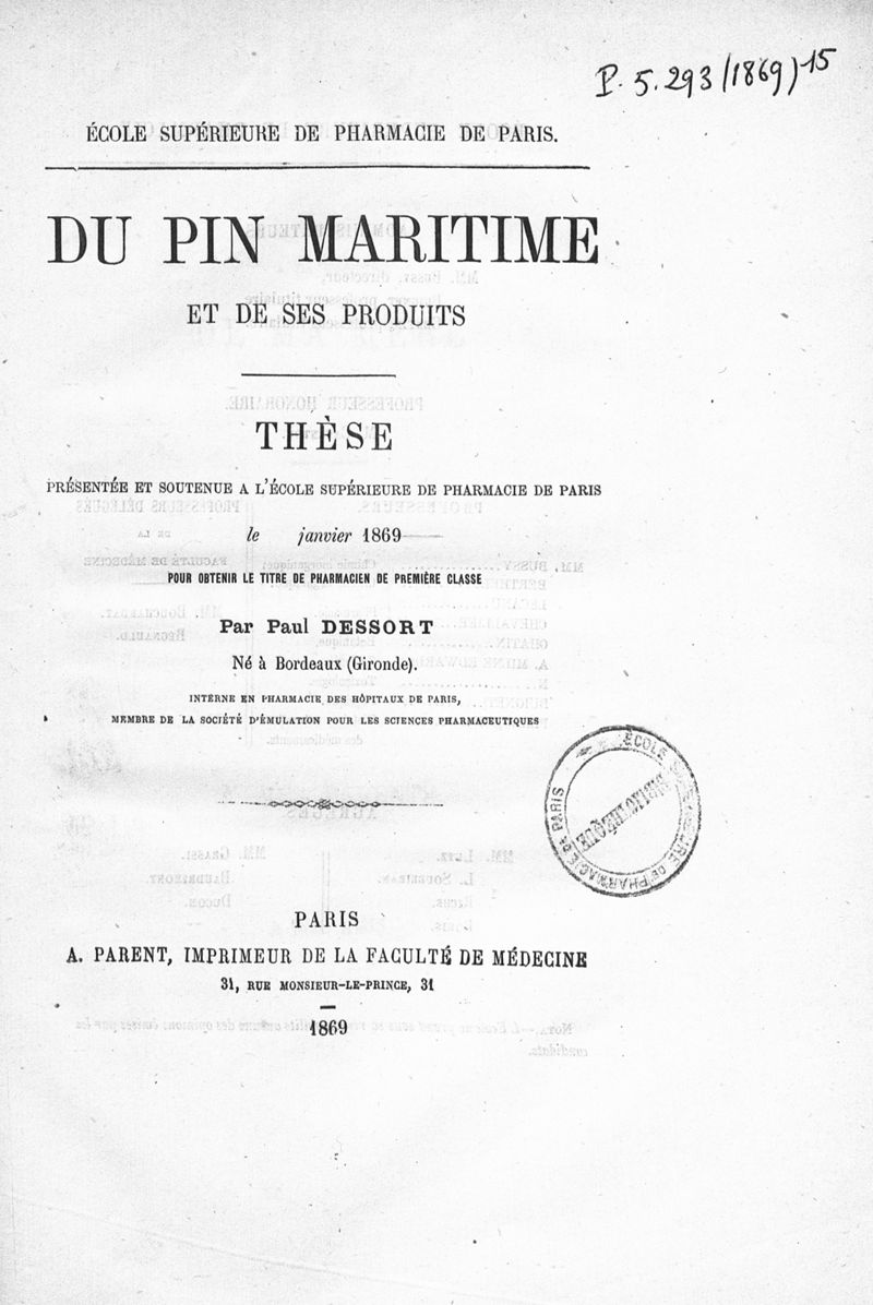 Thèse de pharmacie de Paris ,