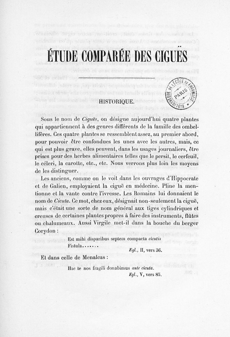 Étude comparée des ciguës