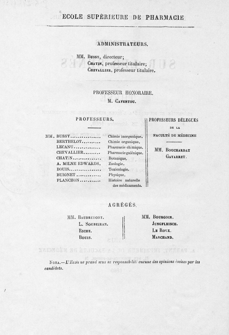 Thèse de pharmacie de Paris ,